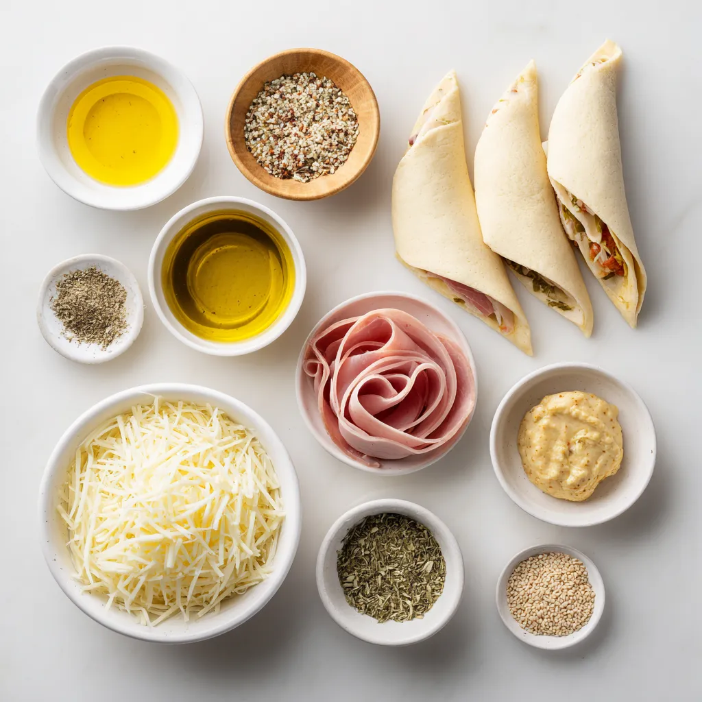 The ingredients for the Crescent Roll Sandwich Bake are simple yet delicious. You start with two cans of refrigerated crescent roll dough. This dough gives the bake its flaky, buttery base. Next, you will need one pound of deli turkey or chicken, sliced thin. This adds a nice protein boost. For a savory touch, add one cup of cooked ham, also sliced thin.