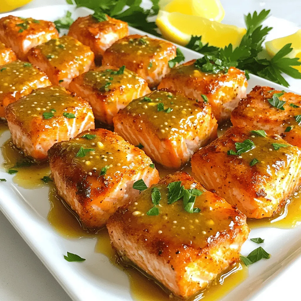 For a beautiful presentation, arrange the salmon bites on a platter. Drizzle leftover honey mustard sauce over the top. Add lemon wedges around the plate for brightness. Serve the bites with a side of roasted veggies or a fresh salad for a complete meal. The bright colors will make your dish pop!