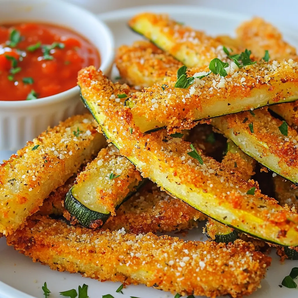 The main ingredients for Air Fryer Parmesan Zucchini Fries are simple yet flavorful. You need two medium zucchinis. Cutting them into thin fry shapes makes them crispy. Next, grab one cup of breadcrumbs. I prefer whole wheat for a nutty taste. You also need half a cup of grated Parmesan cheese. This cheese adds a rich flavor that makes these fries irresistible.