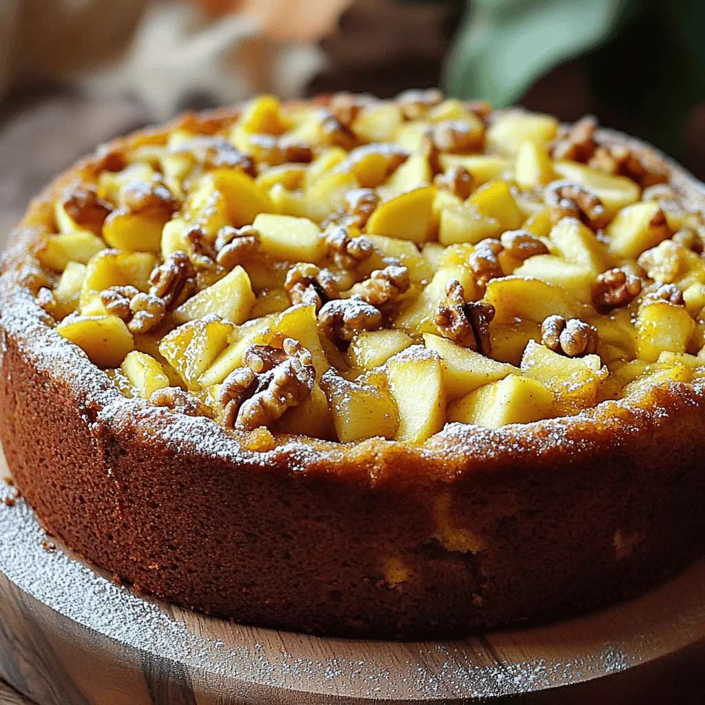 The last step is to fold in 1 cup of diced apples gently. If you like, you can add ½ cup of chopped walnuts for extra crunch. Pour the batter into your prepared pan and smooth the top. Bake in the preheated oven for 50-60 minutes. Check for doneness by inserting a toothpick in the center. If it comes out clean, your cake is ready! Let it cool in the pan for about 10 minutes. After that, transfer it to a wire rack to cool completely. Finally, dust the top with powdered sugar for a lovely finish.