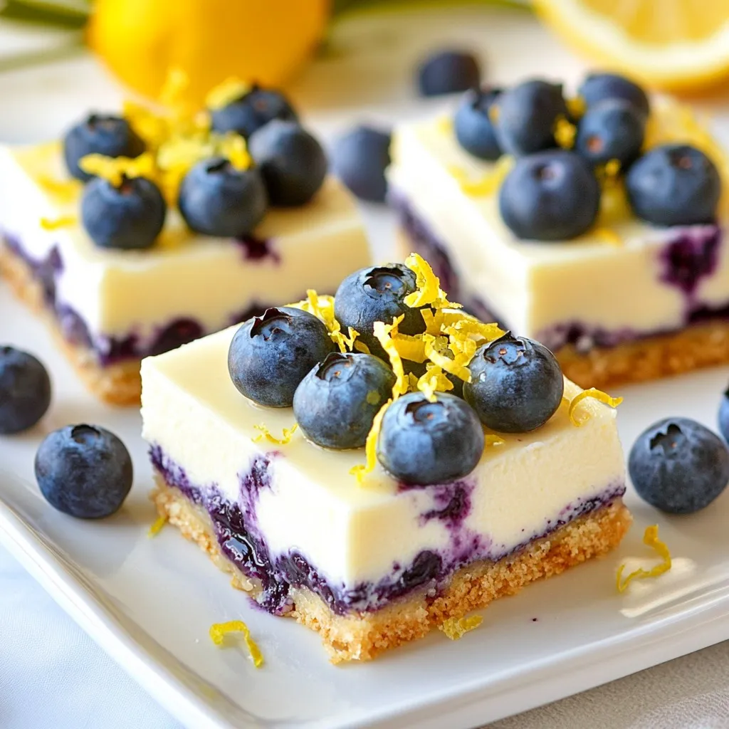 After cooling, chill the bars for at least 4 hours. This makes them easier to slice. Use the parchment to lift them out of the pan. Slice the bars into even squares for neat serving. Garnish with extra blueberries and lemon zest for a pop of color. Store leftovers in the fridge for up to 5 days.