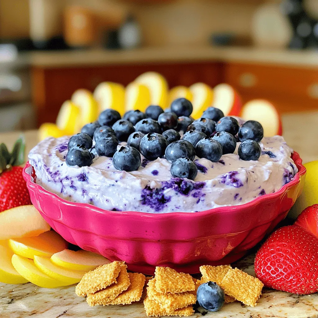 When serving the dip, use a nice dish for presentation. Smooth the top with a spatula for a clean look. Garnish with extra blueberries for an eye-catching touch.