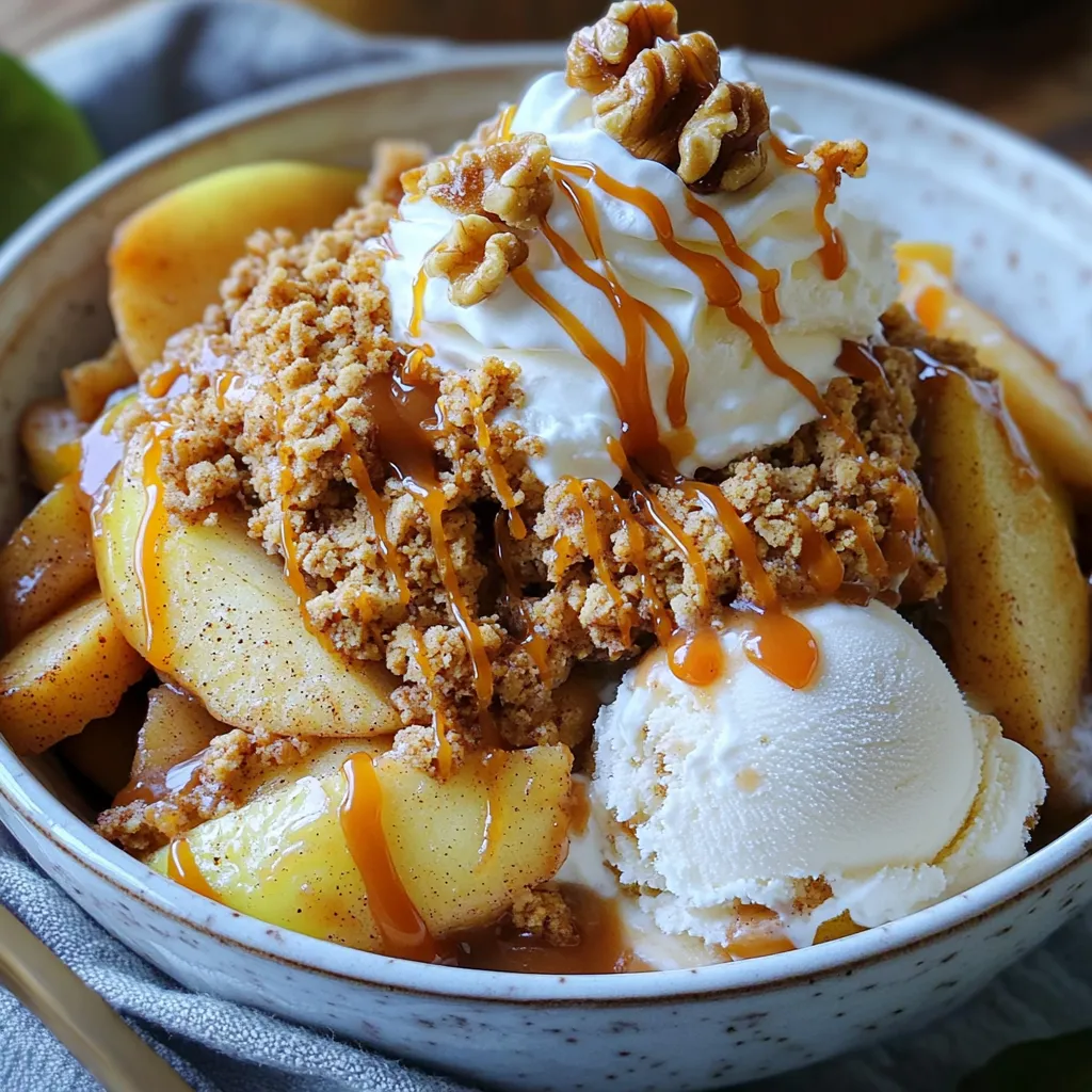 Want to make your sundae even better? Add a pinch of nutmeg to the apple mix. It adds warmth and depth. You can also mix in dried fruits like raisins or cranberries for extra sweetness. If you love nuts, add more walnuts or some pecans on top. These give a nice crunch that contrasts with the ice cream. For a twist, try caramel sauce mixed with a little sea salt. It creates a delightful sweet and salty flavor that pairs perfectly with the apple crisp.