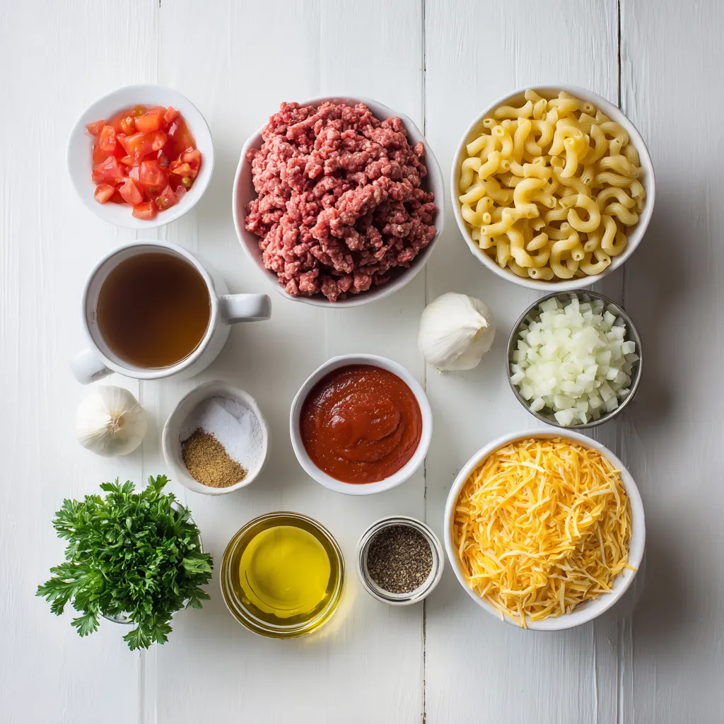 Each of these ingredients plays a vital role in building the flavors of your casserole. The ground beef provides protein and a hearty base. Onions and garlic add depth and aroma. Elbow macaroni brings texture, while beef broth and diced tomatoes contribute moisture and richness. The combination of cheddar and mozzarella cheese creates a gooey, satisfying topping that melts beautifully.