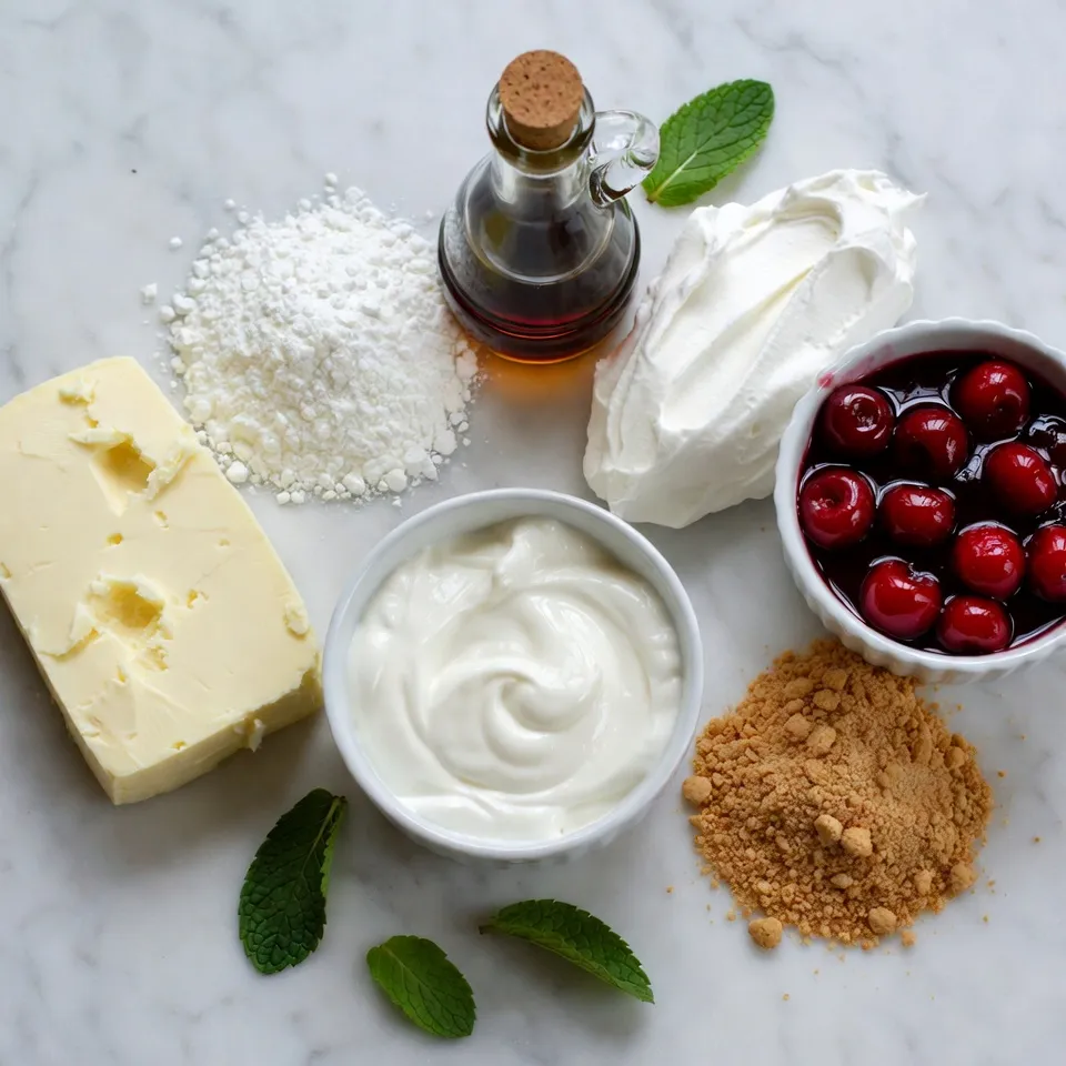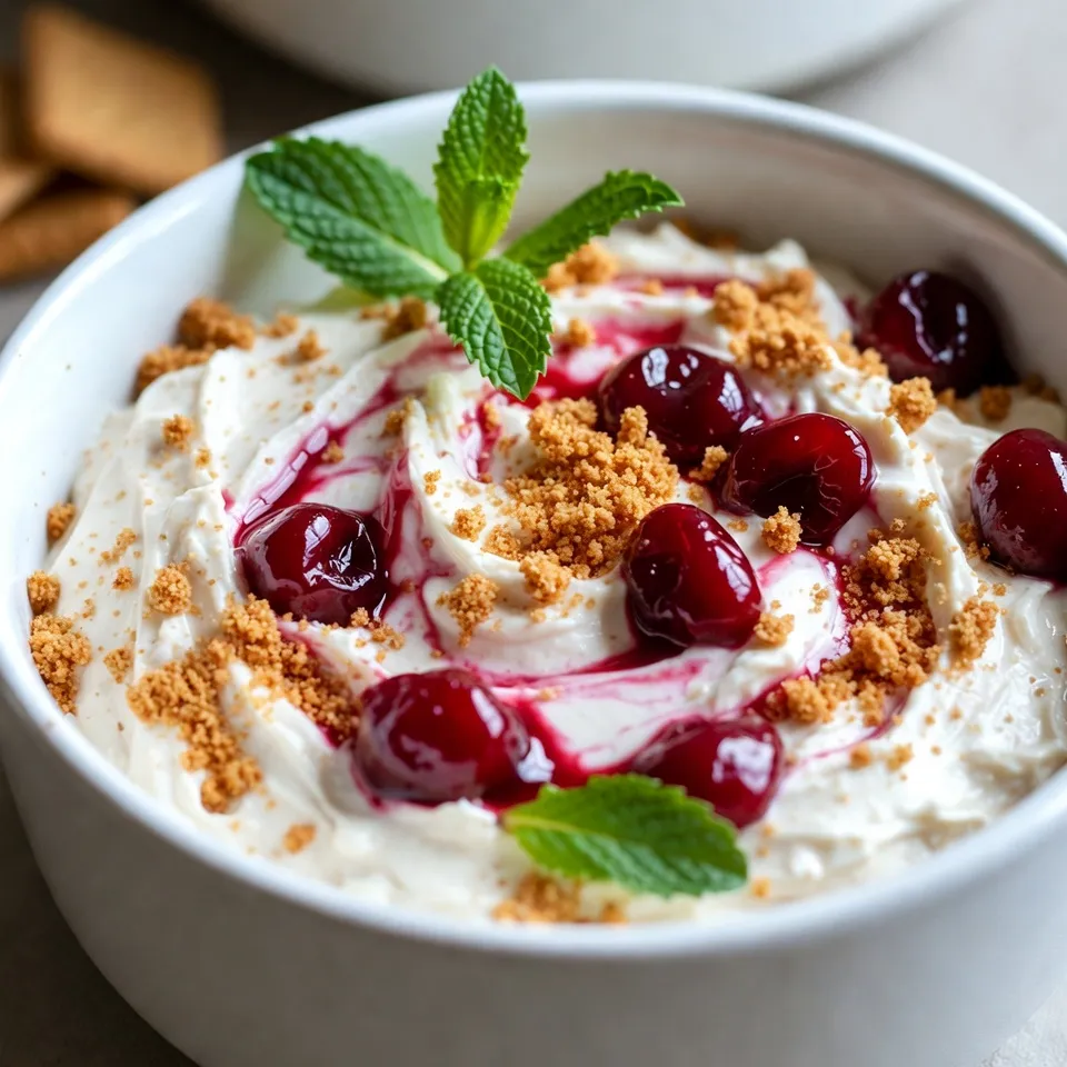 I love using cherry pie filling for that burst of flavor. If you prefer fresh cherries, they work too. They need to be pitted and chopped. For garnish, I sprinkle graham cracker crumbs on top. They provide a nice crunch. Fresh mint leaves add a pop of color and freshness.