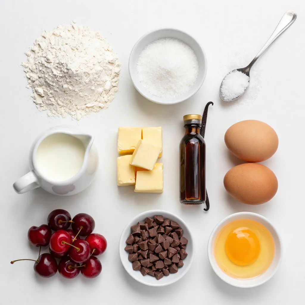 Each ingredient plays a key role in the final taste and texture. The flour gives the scones structure. Sugar adds sweetness, while baking powder helps them rise. Salt enhances the flavors. The cold butter creates a flaky texture. Heavy cream makes them rich and tender. The egg binds the dough, and vanilla adds a warm flavor. Cherries provide tartness, and chocolate offers a sweet touch.