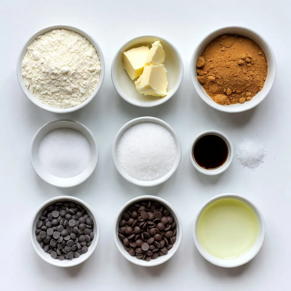 To make these chocolate chip cookie dough truffles, you need simple ingredients. All-purpose flour gives structure to the dough. Softened butter adds creaminess. Brown sugar gives a rich taste, while granulated sugar adds sweetness.