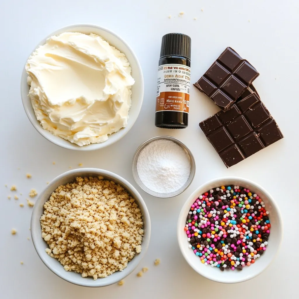 Each ingredient has a role. The cream cheese gives a rich, creamy base. The powdered sugar adds sweetness, while vanilla brings a lovely aroma. Graham cracker crumbs create a nice texture, and mini chocolate chips add little bursts of chocolate. The dark chocolate coating ties it all together, giving a smooth finish.
