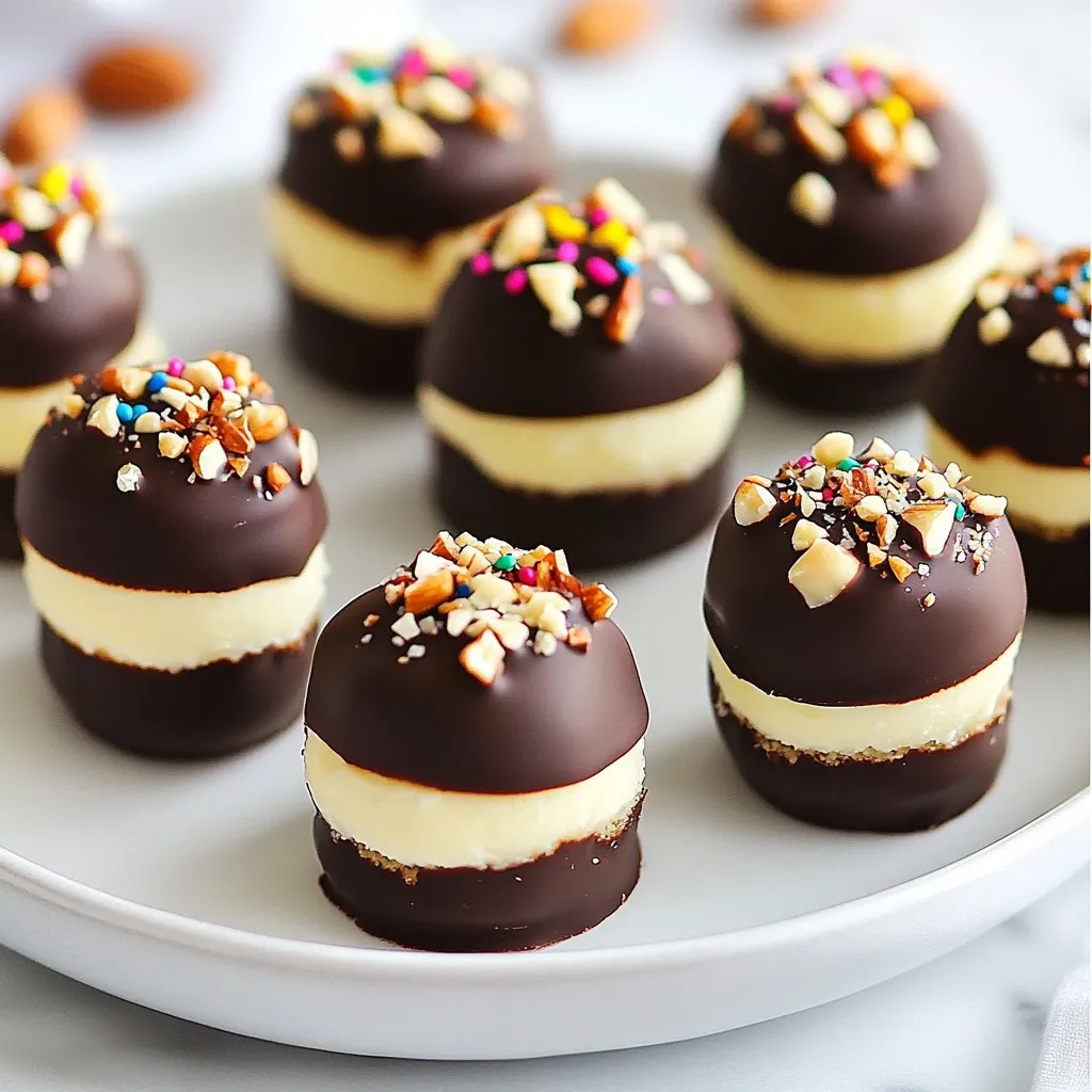 Garnish the bites to make them pop! Use colorful sprinkles or crushed nuts for a fun touch. These add texture and visual appeal. For a classy look, arrange the bites on a decorative platter. They are perfect for parties or gatherings.