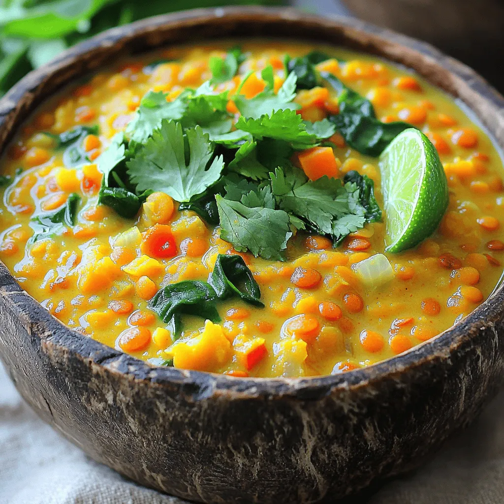 Gathering these ingredients sets the stage for a delicious coconut curry lentil soup. The red lentils form the heart of this dish. They cook quickly and offer a smooth texture. Coconut milk adds creaminess and a subtle sweetness. Vegetable broth gives depth, while onion and garlic create a strong base.