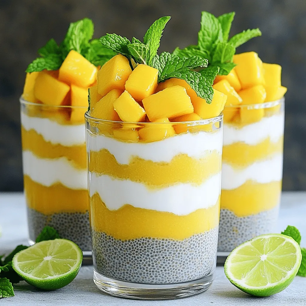 For the best presentation, use clear glass cups. This way, you can show off the pretty layers of chia and mango. Start with a layer of pudding, followed by diced mango. Repeat this until the cups are full. Top with extra mango and fresh mint leaves. For a zesty touch, add a slice of lime on the rim. This not only looks great but also adds a burst of flavor. Enjoy your colorful dessert!