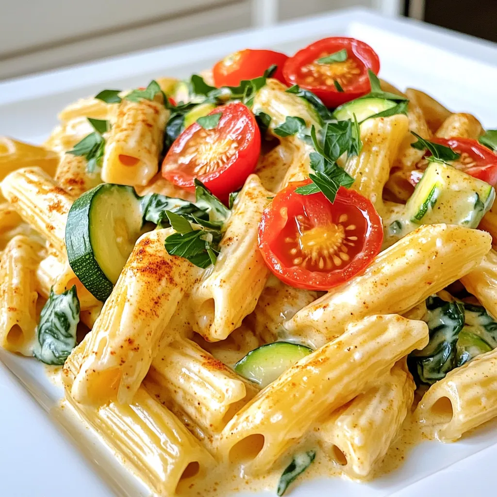 - 250g pasta (your choice: penne, fusilli, or linguine) - 1 tablespoon olive oil - 1 bell pepper (red or yellow), sliced - 1 zucchini, sliced - 1 cup cherry tomatoes, halved - 1 cup spinach, fresh - 3 cloves garlic, minced - 1 teaspoon Cajun seasoning - 1 teaspoon smoked paprika - 1 cup heavy cream or coconut cream - 1/2 cup grated Parmesan cheese or nutritional yeast for a vegan option - Salt and pepper to taste - Fresh parsley, chopped for garnish This creamy Cajun veggie pasta serves four. Each serving has about: - Calories: 450 - Protein: 12g - Carbohydrates: 50g - Fat: 20g - Fiber: 3g This dish is filling and has a nice balance of nutrients. You get veggies, carbs, and fats all in one meal! You can easily change ingredients to suit your taste. Here are some ideas: - Use whole wheat pasta for extra fiber. - Swap heavy cream for Greek yogurt for a lighter option. - Replace bell peppers with mushrooms or carrots for a different flavor. - Use almond milk instead of coconut cream for a nutty taste. - Add nutritional yeast instead of Parmesan for a vegan twist. These options keep the dish fun and fresh. Don't be afraid to get creative! First, boil water in a large pot. Add salt to the water for flavor. Once boiling, add 250g of your favorite pasta—penne, fusilli, or linguine. Cook until al dente, which usually takes about 8-10 minutes. Stir it occasionally to prevent sticking. After that, drain the pasta in a colander and set it aside. Now, grab a large skillet and heat 1 tablespoon of olive oil over medium heat. When the oil is hot, add your sliced bell pepper and zucchini. Sauté them for about 3-4 minutes until they soften a little. Next, toss in 3 minced garlic cloves and 1 cup of halved cherry tomatoes. Cook for another 2-3 minutes. You want the garlic to smell great and the tomatoes to get a bit blistered. It’s time to spice things up! Sprinkle in 1 teaspoon of Cajun seasoning and 1 teaspoon of smoked paprika. Mix well to coat the veggies evenly with the spices. Lower the heat and pour in 1 cup of heavy cream or coconut cream. Stir to combine and let it simmer for 2-3 minutes. This helps the sauce thicken a bit. After that, mix in 1/2 cup of grated Parmesan cheese or nutritional yeast for a vegan twist. Stir until it melts into the sauce. Season with salt and pepper to taste. Add 1 cup of fresh spinach to the skillet. Cook just until it wilts, which takes about 1 minute. Now, gently add your cooked pasta to the skillet. Toss everything together to coat the pasta in that creamy sauce. Remove the skillet from heat and let it sit for a minute. This allows all the flavors to blend beautifully. Now, you’re ready to serve! To make great pasta, follow these steps. - Always use a big pot of water. This helps the pasta cook evenly. - Salt the water well, about 1 tablespoon per 4 quarts. This adds flavor. - Stir the pasta often while it cooks. This keeps it from sticking. - Cook it until al dente, which means it should still have a slight bite. - Drain it quickly but do not rinse. Rinsing washes away flavor. If you want more kick, add more Cajun seasoning. Start small, maybe half a teaspoon more. Taste as you go. If it’s too spicy, add extra cream or cheese. This will cool it down. You can also use less seasoning if you prefer mild flavors. To store leftovers, let the pasta cool first. Then, place it in an airtight container. It can last in the fridge for up to three days. To reheat, warm it on low heat on the stove. Add a splash of cream or water to keep it creamy. {{image_2}} To make a vegan version, swap heavy cream for coconut cream. Use nutritional yeast instead of Parmesan cheese. The flavors remain bold and delicious. You still get that creamy texture and rich taste. This dish stays vibrant and satisfying without any animal products. Want to add protein? Toss in cooked chicken, shrimp, or tofu. Each option brings its own flavor. Chicken adds heartiness, while shrimp gives a fresh, seafood twist. Tofu is great for a plant-based protein boost. Cook your protein separately, then mix it in with the pasta and sauce. For a low-carb choice, substitute pasta with zucchini noodles or spaghetti squash. These options stay light and healthy, while still soaking up the creamy sauce. They offer a satisfying bite without the extra carbs. Just spiralize the zucchini or roast the squash before adding to the dish. For a great meal, pair your creamy Cajun veggie pasta with simple sides. A fresh green salad works well. Toss mixed greens with a light vinaigrette. You can also serve garlic bread on the side. Its crunchy texture complements the creamy pasta. Roasted vegetables add a nice touch, too. Try carrots, broccoli, or asparagus for vibrant color and flavor. When enjoying this dish, a nice glass of wine enhances the flavors. A crisp Sauvignon Blanc pairs well with the veggies. Its citrus notes balance the richness of the cream. If you prefer red wine, a light Pinot Noir is a good choice. It’s smooth and won’t overpower the dish. Remember to serve your wine chilled for the best taste. Presentation makes a meal special. Start by plating the creamy Cajun veggie pasta in a wide, shallow bowl. This allows the colors to shine. Garnish with chopped fresh parsley for a pop of green. You can add a sprinkle of extra Parmesan cheese on top, too. For added flair, serve with a lemon wedge on the side. The bright yellow adds a cheerful touch to your plate. You can easily make this pasta gluten-free. Simply choose gluten-free pasta. Look for types made from rice, corn, or quinoa. These options cook well and taste great. You can follow the same cooking steps. This way, you enjoy all the creamy goodness without gluten. Yes, you can use other vegetables in this dish. Feel free to swap bell peppers for mushrooms or broccoli. Carrots or asparagus also work well. The key is to choose veggies you like. Just make sure to cut them into similar sizes for even cooking. You can store leftovers for about three to four