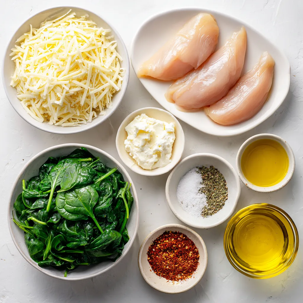 These ingredients work together to create a rich and creamy dish. The chicken breasts provide a great base. Cream cheese, mozzarella, and Parmesan create that luscious, cheesy layer. Spinach adds color and nutrition. Garlic and Italian seasoning give it depth and flavor. Paprika adds a nice hint of spice. Salt and pepper balance everything perfectly.