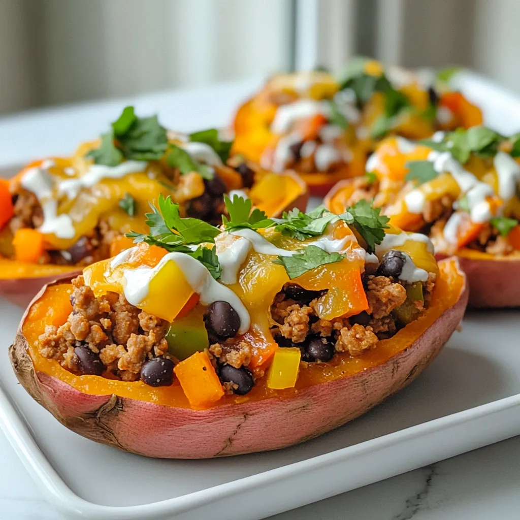 Sweet potatoes are rich in vitamins A and C. They help boost your immune system. Ground turkey is a lean protein, keeping your meal light yet filling. Black beans add fiber and protein, helping with digestion. Bell peppers are high in antioxidants, which combat free radicals. Using Greek yogurt instead of sour cream adds protein and probiotics for gut health.