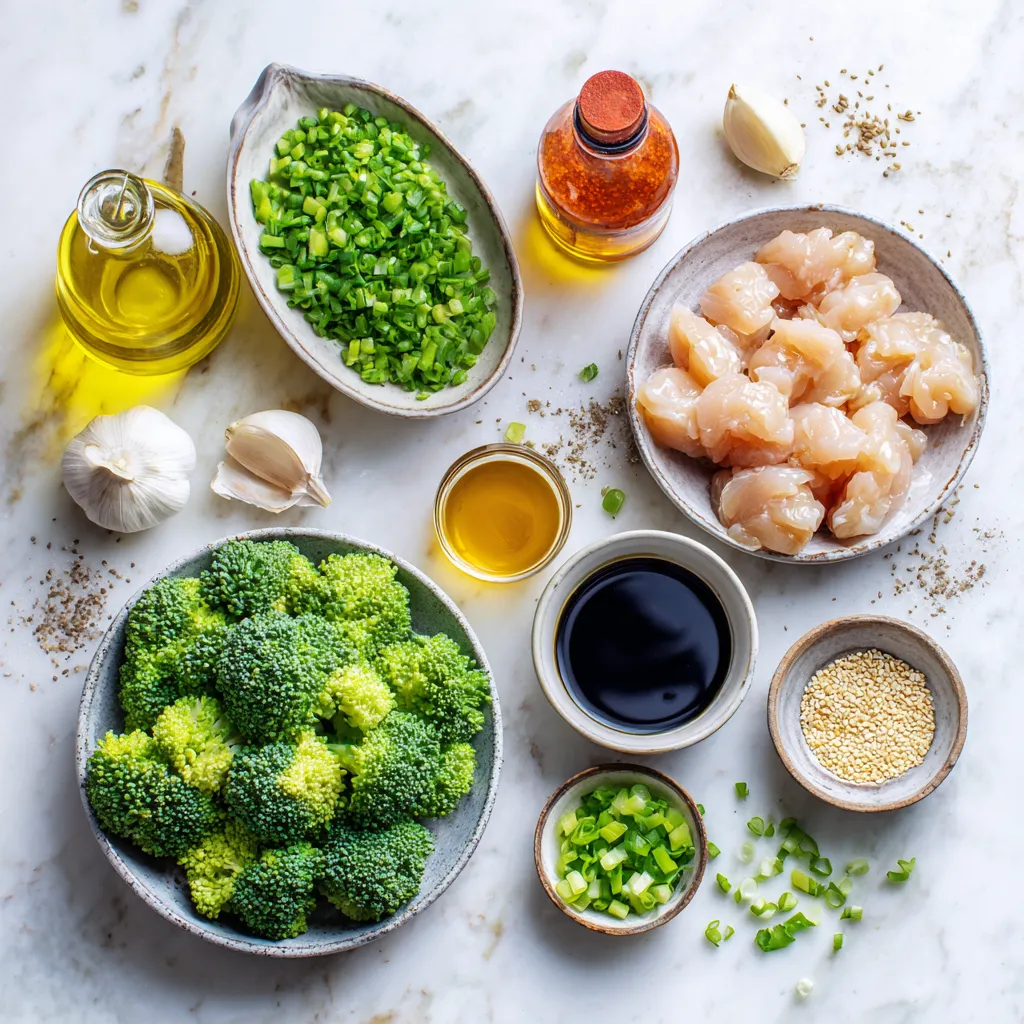 To make Honey Sriracha Chicken and Broccoli, you need fresh, quality ingredients. Start with chicken breast. It should be cut into bite-sized pieces. This helps it cook evenly. Next, choose bright green broccoli florets. They add color and nutrients.