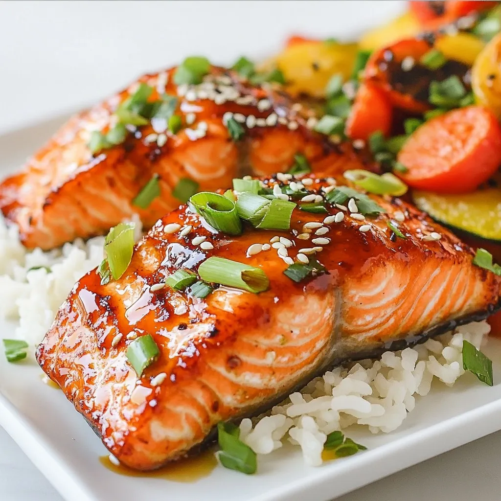 Let’s gather what you need for this tasty dish. Here is a simple list of ingredients: - 4 salmon fillets (6 oz each) - 1/4 cup honey - 2 tablespoons Sriracha sauce - 2 tablespoons soy sauce - 1 tablespoon rice vinegar - 1 teaspoon minced garlic - 1 teaspoon grated ginger - Salt and pepper to taste - 1 tablespoon sesame oil - 2 green onions, sliced (for garnish) - Sesame seeds (for garnish) Each ingredient plays a key role. The salmon gives you a rich base. Honey adds sweetness. Sriracha brings heat, while soy sauce adds depth. Rice vinegar gives a nice tang. Garlic and ginger add warmth and flavor. Sesame oil offers a nutty touch. When you mix these ingredients, the magic happens. You create a glaze that is both sweet and spicy. This glaze coats the salmon, making it shine. It also brings a burst of flavor in every bite. With fresh green onions and sesame seeds as toppings, the dish looks beautiful. Each ingredient complements the others well. Together, they make this honey Sriracha glazed salmon a dish you will love to share. {{ingredient_image_1}} - In a small bowl, whisk together: - 1/4 cup honey - 2 tablespoons Sriracha sauce - 2 tablespoons soy sauce - 1 tablespoon rice vinegar - 1 teaspoon minced garlic - 1 teaspoon grated ginger Mix until smooth. The sauce should be thick but pourable. Taste it, and adjust the flavors if needed. - Take 4 salmon fillets and put them in a shallow dish. - Season the fillets with salt and pepper. - Pour the marinade over the salmon. Make sure each piece is well coated. - Cover the dish with plastic wrap. Let it sit in the fridge for at least 30 minutes. This helps the salmon soak up the flavors. - Preheat your oven to 400°F (200°C). - Line a baking sheet with parchment paper. - Place the marinated salmon fillets skin-side down on the sheet. - Drizzle 1 tablespoon of sesame oil over the salmon. - Bake for 12-15 minutes. The salmon should flake easily with a fork when done. - For a richer finish, switch to broil for 2-3 minutes after baking. - Keep a close eye on it to prevent burning. This step adds a nice caramelized look. - Once out of the oven, let the salmon rest a minute. - Garnish with sliced green onions and sesame seeds. - Serve the salmon on a bed of jasmine rice and veggies. Use any leftover marinade over the rice for extra flavor. To get that perfect glaze on your salmon, timing is key. Bake the salmon at 400°F (200°C) for 12-15 minutes. This allows the glaze to caramelize nicely without burning. If you want a deeper flavor, let it broil for 2-3 minutes at the end. Just keep an eye on it to avoid burning. For the marinade, I suggest marinating the salmon for at least 30 minutes. This lets the flavors soak in well. You can also marinate it for a few hours for even more taste. Just remember to keep it in the fridge while it marinates. When it comes to sides, jasmine rice and roasted veggies are great with this dish. The rice absorbs the glaze well, and the veggies add color and crunch. You can also serve it on a salad for a lighter option. Some fresh herbs, like cilantro or basil, can brighten the plate and add freshness. If you want to get creative, serve the salmon in tacos. Use soft tortillas and add some slaw for crunch. Drizzle with extra glaze for an added kick. To check if your salmon is done, use the flaking test. Take a fork and gently press down on the salmon. If it flakes easily, it is ready. If not, give it a few more minutes in the oven. For storage, let the salmon cool completely before placing it in an airtight container. It will stay fresh in the fridge for up to three days. If you plan to keep it longer, consider freezing it. Just make sure to wrap it tightly to avoid freezer burn. Pro Tips Use Fresh Ingredients: Fresh salmon and high-quality honey will enhance the flavor of your glaze. Adjust the Spice Level: If you prefer a milder flavor, reduce the amount of Sriracha or add a bit of lime juice to balance the heat. Check for Doneness: Salmon is perfectly cooked when it flakes easily with a fork. Avoid overcooking to keep it moist. Let it Rest: Allow the salmon to rest for a few minutes after baking to let the juices redistribute for a more flavorful bite. {{image_2}} Using Different Sauces You can change the sauce for fun flavors. Try hoisin sauce for a sweet twist. Teriyaki sauce adds a nice umami kick. If you like a zesty touch, use lime juice instead of rice vinegar. Each sauce brings its own taste to the dish. Salmon Substitutes If you can't find salmon, don’t worry! Trout works well as an alternative. You can also use cod or tilapia for a lighter meal. Just adjust cooking time since different fish cook at different rates. Grilling vs. Baking Grilling gives salmon a smoky taste. Just make sure to oil your grill to prevent sticking. Bake it in the oven for a more hands-off approach. Both methods yield delicious results, so choose what suits your mood. Pan-Seared Option Pan-searing is quick and gives a nice crust. Heat oil in a pan, add the salmon skin-side down, and cook for about 4 minutes. Flip and cook for another 3-4 minutes. This method keeps the fish moist and adds a great texture. Spice Level Adjustments Want it spicier? Add more Sriracha to the marinade. If you prefer it milder, reduce the Sriracha or add a touch of honey. It’s all about finding the right balance for your taste. Sweetness Balance To adjust sweetness, add more honey if you like it sweeter. If it’s too sweet, mix in a splash of soy sauce. This will help cut the sweetness and add depth to the flavor. To keep your honey Sriracha glazed salmon fresh, always seal it well. Use an airtight container or wrap it tightly in plastic wrap. This helps avoid any air exposure. Your salmon will stay good in the fridge for up to three days. If you want to save it for later, freezing is a great choice. Place the salmon in a freezer-safe bag, removing as much air as possible. This will help prevent freezer burn. You can store it in the freezer for up to t