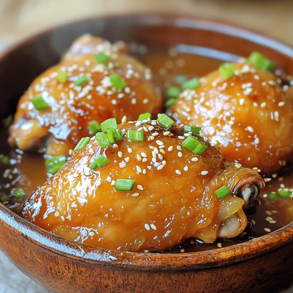 - 2 pounds boneless, skinless chicken thighs - 1/2 cup honey - 1/4 cup low sodium soy sauce - 4 cloves garlic, minced - 2 tablespoons rice vinegar - 1 tablespoon sesame oil - 1 teaspoon ground ginger - 1/4 teaspoon red pepper flakes (optional) - Salt and pepper to taste - 1 tablespoon cornstarch (for thickening, optional) - 2 tablespoons sesame seeds for garnish - Chopped green onions for garnish When I cook, I love to use fresh ingredients. For this honey garlic chicken, you need chicken thighs. They are juicy and tender. I use boneless, skinless thighs for easy cooking. Honey adds a sweet touch. Soy sauce gives a savory depth. Minced garlic brings a strong flavor. You can add rice vinegar for tang. Sesame oil adds a rich taste. Ground ginger gives warmth. Red pepper flakes can spice things up if you like heat. For garnishes, use salt and pepper to your taste. If you want a thicker sauce, consider cornstarch. Sesame seeds and green onions make the dish look pretty. They also add a nice crunch. With these ingredients, you can make a tasty meal in no time. Enjoy the process of cooking! - Set Instant Pot to Sauté mode. - Season chicken thighs with salt and pepper. - Brown chicken for 2-3 minutes on both sides. Sautéing adds flavor. The chicken gets nice and golden. This step is simple and quick. - Whisk together honey, soy sauce, garlic, rice vinegar, ginger, and red pepper flakes. This sauce brings sweet and savory together. It will coat the chicken with a delicious glaze. - Return chicken to pot and pour sauce over it. - Set Instant Pot to Manual mode for 10 minutes. Now, the magic happens! The chicken absorbs all the great flavors. - Allow natural release for 10 minutes. - Perform quick release and open the lid cautiously. Safety first! Wait for the steam to go down. This helps keep the chicken juicy. - Remove chicken, set Instant Pot back to Sauté. - Mix cornstarch with water and stir into sauce. If you like a thicker sauce, this step is for you. It adds a nice finish to your dish. - Return chicken to pot and coat with sauce. - Serve hot, garnished with sesame seeds and green onions. Garnishing makes your meal look beautiful. It also adds a nice crunch and fresh flavor. Enjoy your tasty meal! - Use boneless, skinless thighs for optimal tenderness. They stay juicy and cook well in the Instant Pot. - It is important to season the chicken before sautéing. A sprinkle of salt and pepper adds great flavor. - To adjust sauce thickness, use cornstarch. Mix it with water to form a slurry. - Timing is key when adding the cornstarch slurry. Stir it in during the last few minutes of cooking for best results. - You can add extra spices or vegetables. Try adding bell peppers or broccoli for a colorful twist. - Substituting ingredients is easy for dietary needs. Use tamari instead of soy sauce for gluten-free options. {{image_2}} You can swap chicken thighs for chicken breasts in this recipe. Chicken breasts are leaner and cook a bit faster. Adjust the cooking time to about 8 minutes to avoid dryness. If you want a plant-based option, try tofu. Firm tofu works best. Press it to remove extra water, then cube it. Cook it until golden before adding the sauce. Shrimp is another great choice! Use peeled, deveined shrimp and cook for just 3-4 minutes. They cook quickly and soak up the honey garlic flavor nicely. Want to spice things up? Add jalapeños or sriracha to the sauce. Start with a small amount, like a teaspoon, and taste as you go. You can always add more heat! For a twist on sweetness, use maple syrup or agave instead of honey. These options add a unique flavor. Adjust the amount based on your taste. You can mix and match until it’s just right! Pair your honey garlic chicken with rice or noodles for a filling meal. White rice, brown rice, or even cauliflower rice works well. If you prefer noodles, try udon or rice noodles. You can also create a honey garlic chicken bowl. Add your favorite vegetables, like steamed broccoli or snap peas. Top it with sesame seeds and green onions for a nice crunch. This makes for a great lunch or dinner option! To keep your honey garlic chicken fresh, store it in the fridge. Use airtight containers to avoid air exposure. This keeps the chicken moist and tasty. Make sure to cool the dish before sealing it. Leftovers can last up to four days in the fridge. You can freeze honey garlic chicken for later use. Place it in a freezer-safe container. Make sure to remove as much air as you can. This helps prevent freezer burn. The chicken can stay good for up to three months. To thaw, move it to the fridge overnight. This slow thawing gives the best results. When reheating, use a microwave or skillet. In the microwave, heat in short bursts. Stir often to keep the sauce from splattering. If you use a skillet, add a splash of water to help steam. This keeps the sauce intact and prevents drying out. Enjoy your meal warm and full of flavor! Yes, you can use frozen chicken. Just add 5-10 extra minutes to the cooking time. For best results, make sure the chicken pieces are separated. This helps them cook evenly. Remember to check that the internal temperature reaches 165°F (74°C) for safety. To reduce sweetness, cut down on honey. You can also add a splash of soy sauce or rice vinegar. These ingredients balance the flavors. Adding garlic and ginger helps too, giving depth to the dish. Try adding a pinch of salt for extra flavor. Honey garlic chicken pairs well with: - Steamed rice - Quinoa - Stir-fried vegetables - Noodles - A fresh salad Garnishing with sesame seeds and green onions adds some crunch and color. Yes, you can skip the cornstarch. Your sauce will be thinner, but it will still taste great. If you want a punch of flavor, simmer the sauce longer. This helps concentrate the flavors without thickening. You can keep honey garlic chicken in the fridge for 3-4 days. For longer storage, freeze it for up to 3 months. Make sure to store it in airtight containers to keep 