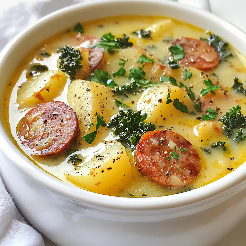 To make Kielbasa Potato Soup, you need the following ingredients: