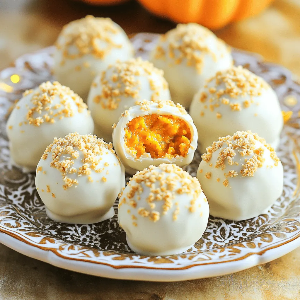 To make no-bake white chocolate pumpkin pie truffles, gather your ingredients. You will need canned pumpkin puree for that rich, smooth base. Next, crushed graham crackers add a nice crunch and flavor. Powdered sugar sweetens the mixture and helps bind it together.