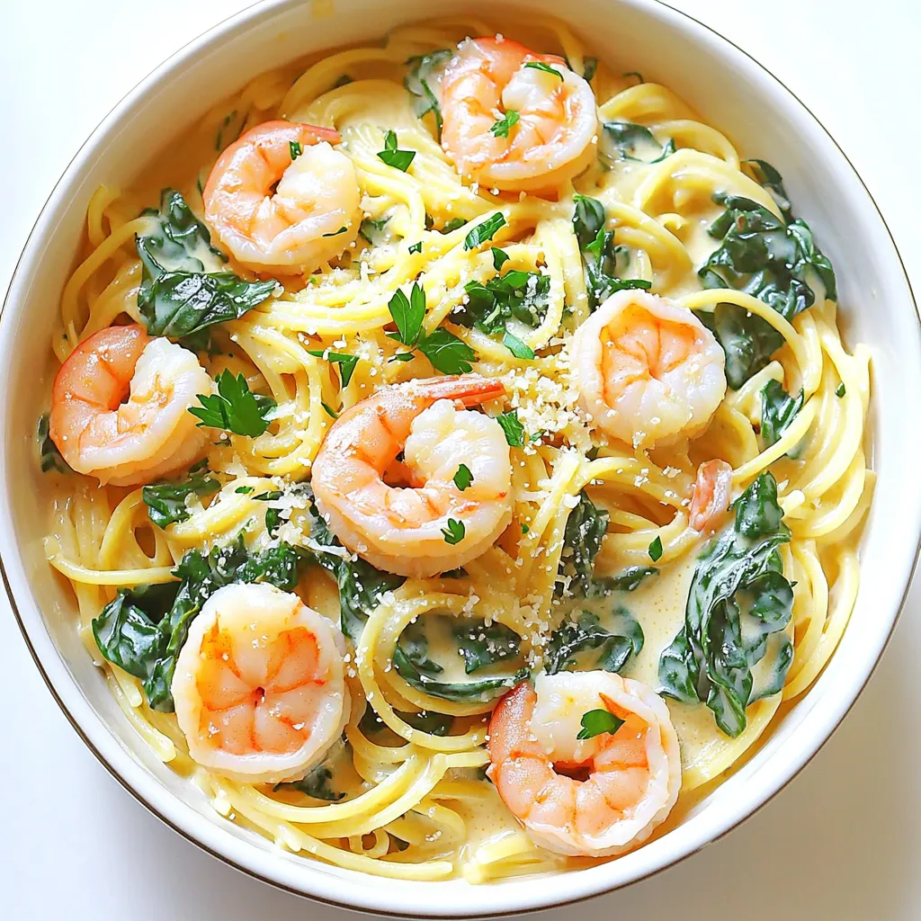 Serve creamy garlic shrimp linguine in shallow bowls. This way, you can see all the colors. Arrange the shrimp and spinach neatly on top. A well-presented dish makes it more fun to eat.