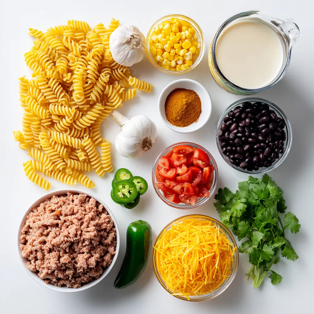 Each ingredient plays a key role. The pasta holds the creamy sauce. The protein adds heartiness and flavor. Vegetables bring color and nutrition. Seasonings give that delicious taco taste. Liquids create the sauce, while toppings add a finishing touch.