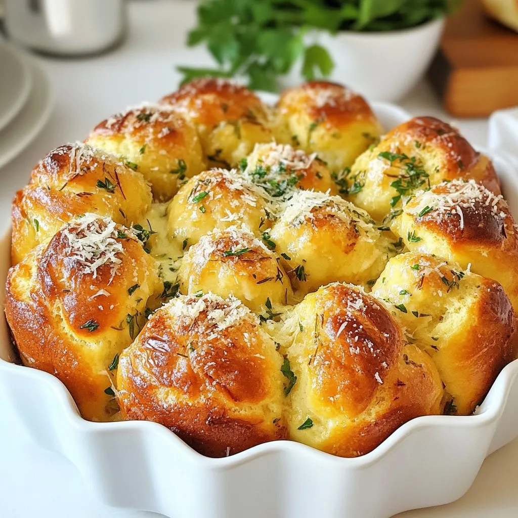 Fresh herbs, like rosemary and thyme, give the bread its unique taste. Garlic and onion powders add depth. Parmesan cheese brings a rich, salty flavor. Finally, melted butter coats the dough balls and makes them golden.