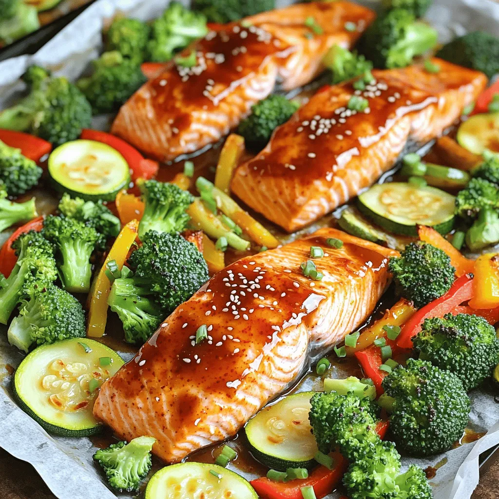 What do you need for this dish? First, you need salmon fillets. Salmon is full of healthy fats and cooks nicely. Next, gather fresh vegetables. I like broccoli, bell peppers, and zucchini. They add color and crunch. Then, grab sweet chili sauce. This sauce brings a sweet and spicy kick. Soy sauce or coconut aminos is next. This will add umami and saltiness to the dish.