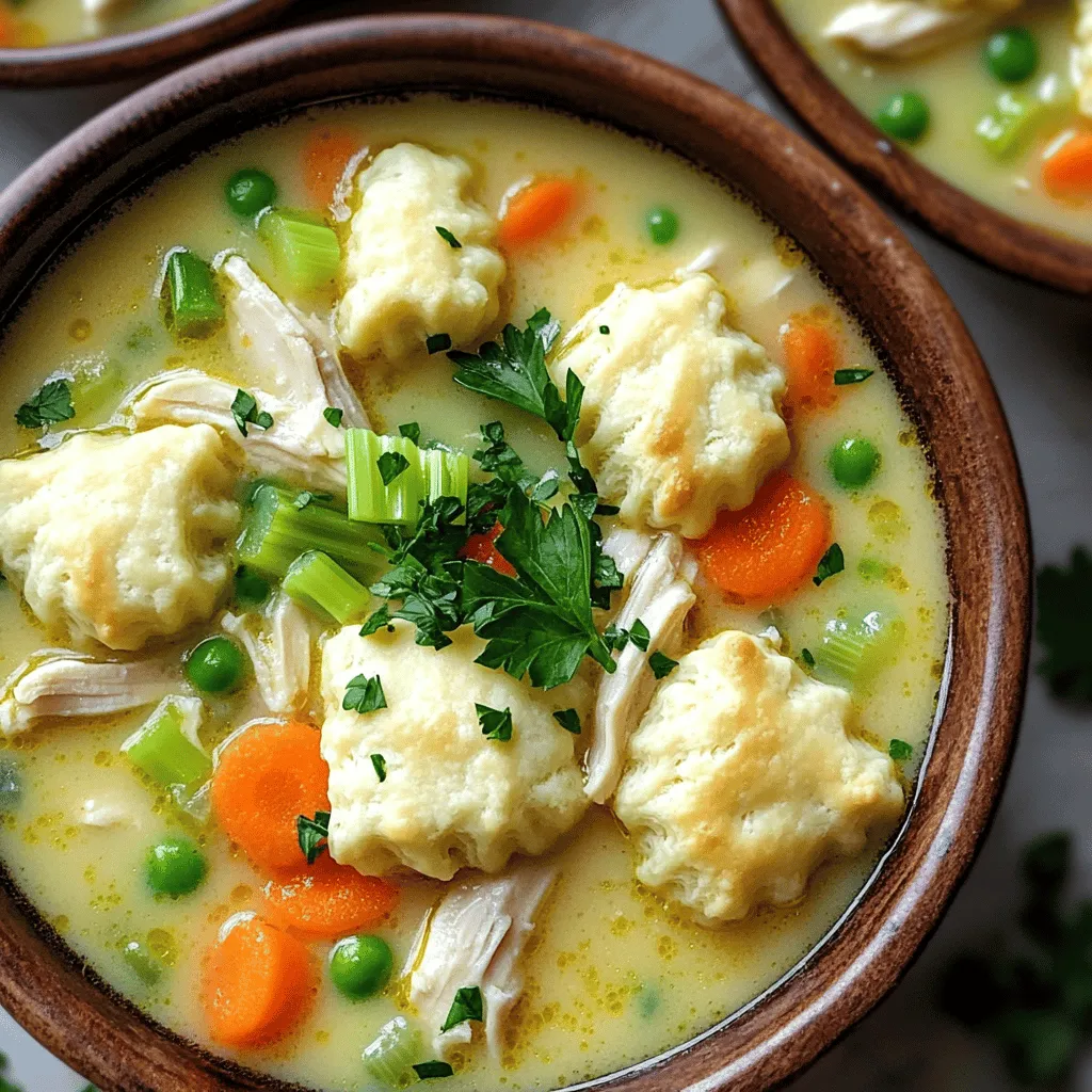 About 30 minutes before serving, stir in 1 cup of heavy cream and 1 cup of small biscuit dough pieces. Cover and let it cook until the dough is fluffy and cooked through. Before serving, taste the soup and adjust the seasoning with salt or pepper if needed. Serve hot, garnished with fresh parsley for a vibrant finish. Enjoy your cozy bowl of soup!