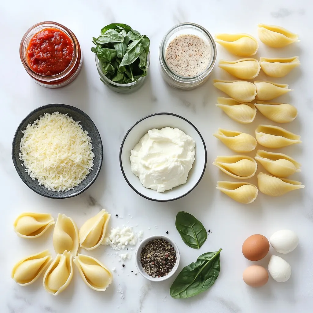 To make delicious spinach ricotta stuffed shells, gather these ingredients:
