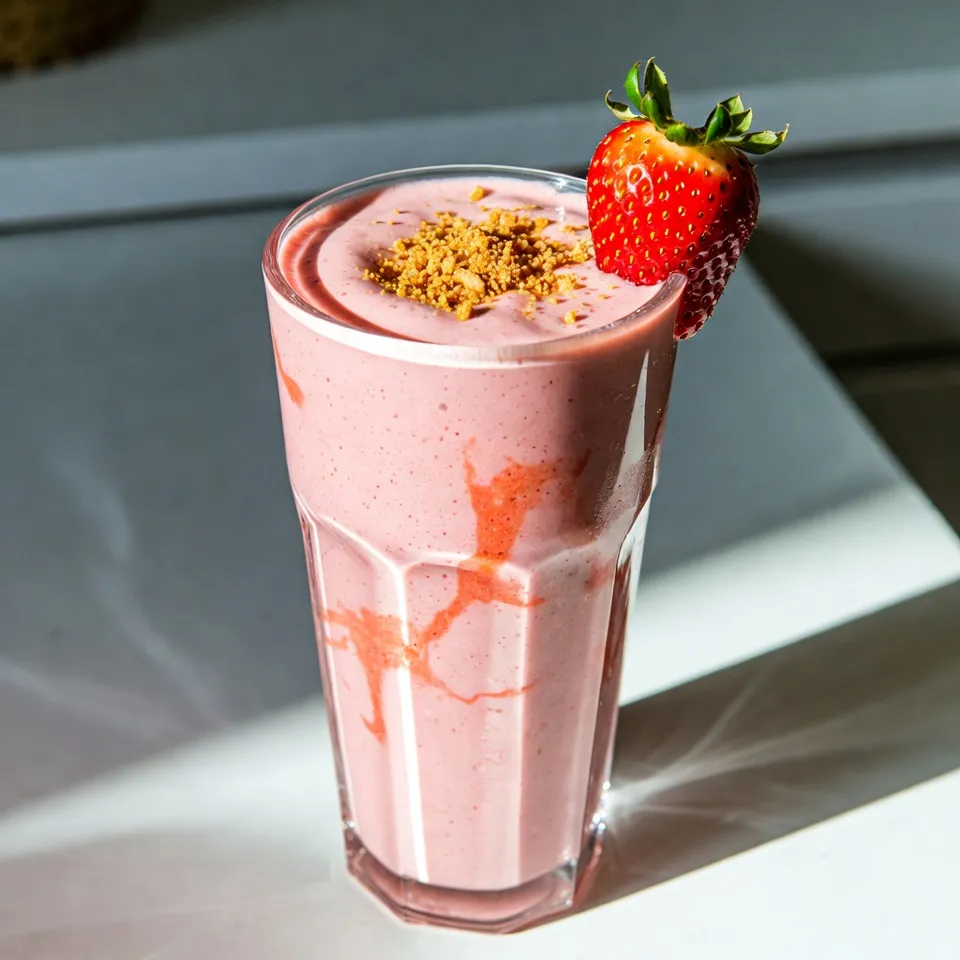 Pour the smoothie into tall glasses. For a fun touch, sprinkle extra graham cracker crumbs on top. You can also add a fresh strawberry on the rim of the glass. Serve with a straw for a delightful drink!
