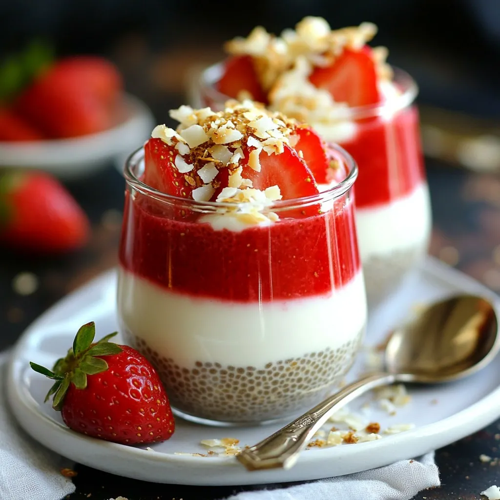 To boost flavor, try adding a pinch of sea salt. This small addition enhances the sweetness of the maple syrup. You can also add a splash of coconut extract for a stronger coconut taste. For texture, layer fresh strawberries between the pudding layers. This adds a nice crunch and freshness to every bite. Toasted coconut flakes on top provide a delightful crunch. They bring in a nutty flavor that pairs well with the sweetness of the pudding.