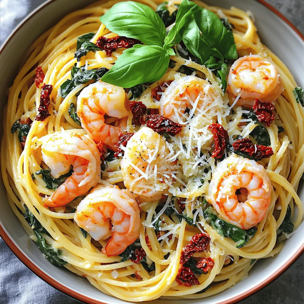 This pasta dish needs fresh and tasty items. Start with the best spaghetti or linguine you can find. The shrimp should be large, peeled, and deveined for easy cooking. Sun-dried tomatoes add a rich flavor.