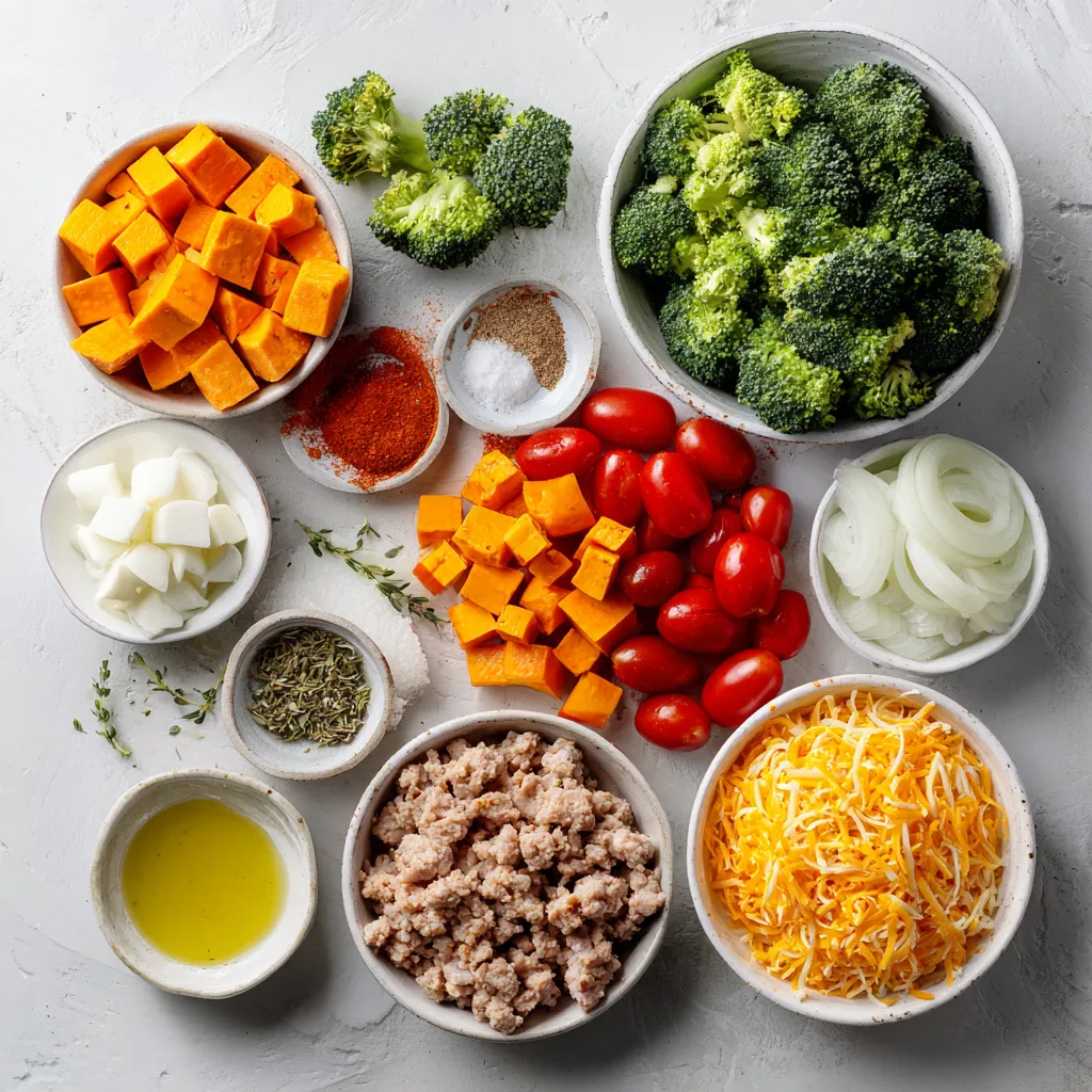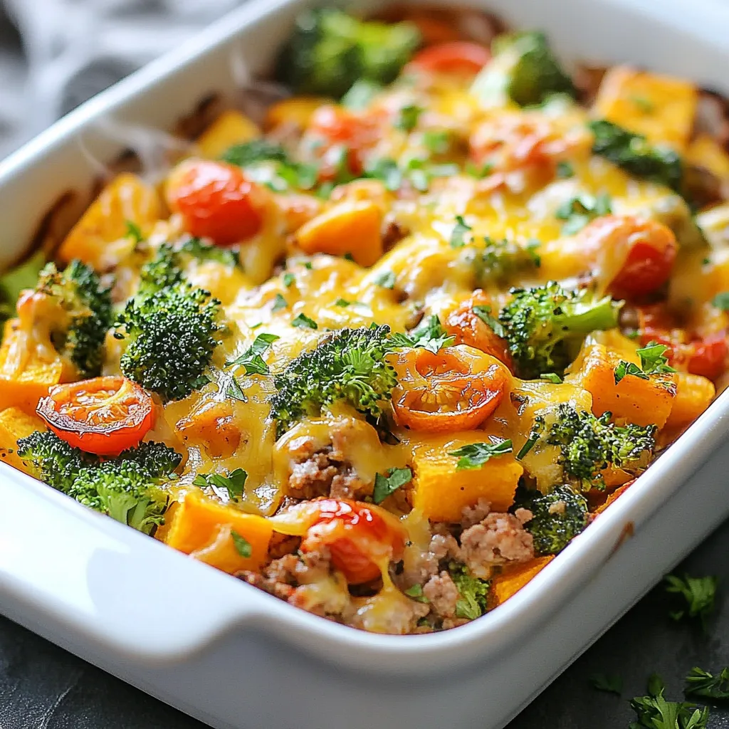 - Healthy Ingredients: This bake is packed with nutrient-dense ingredients like sweet potatoes, broccoli, and ground turkey, making it a wholesome meal option.