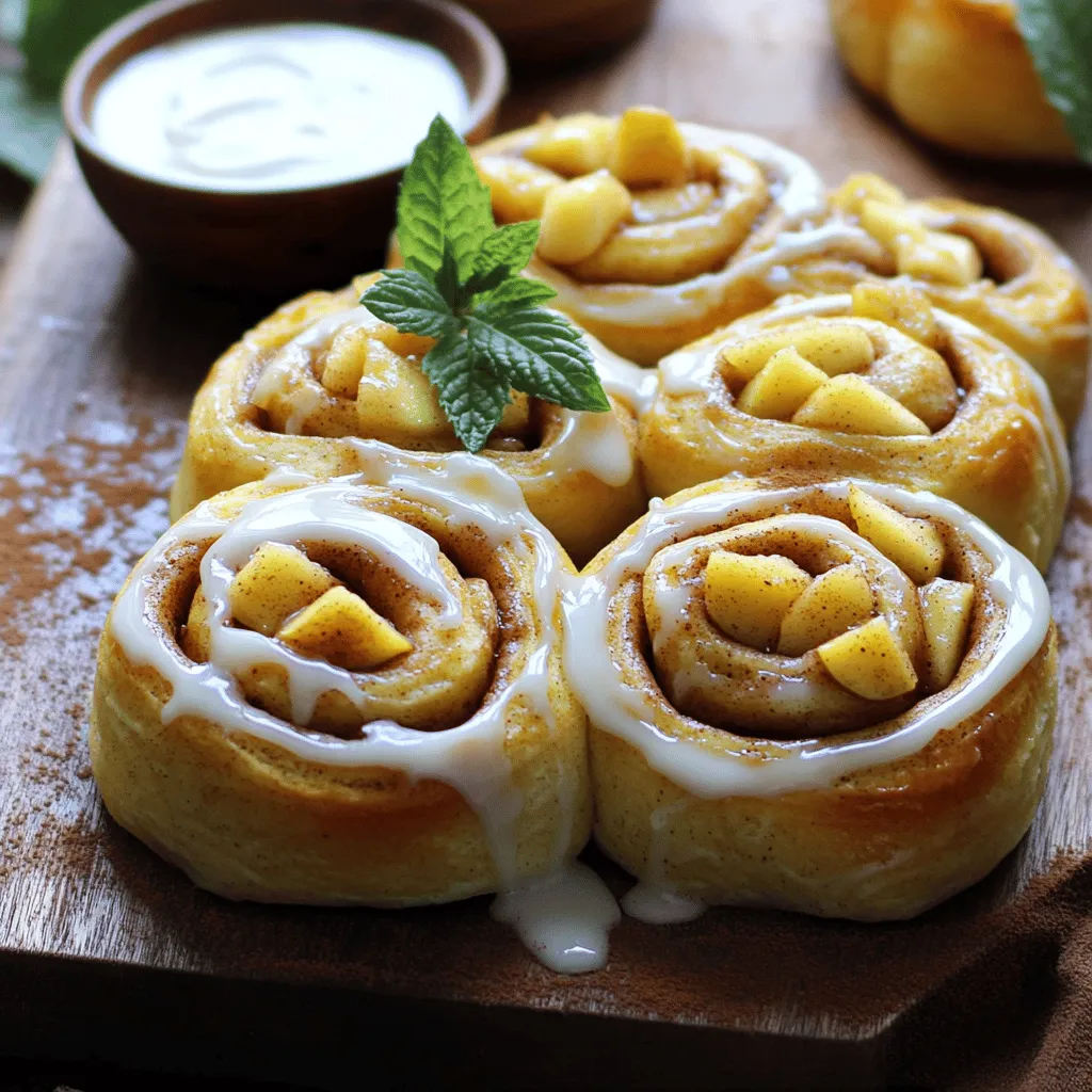 In this recipe, we mix simple ingredients to create a warm and sweet treat. For the cinnamon rolls, we need flour, sugar, yeast, salt, warm milk, butter, and an egg. These form the soft dough. The apple filling uses a diced apple, lemon juice, cinnamon, brown sugar, and flour. This filling gives the rolls a fruity and spiced flavor. Lastly, the glaze adds a sweet touch with powdered sugar, milk, and vanilla extract. Each part works together to create a delightful experience!