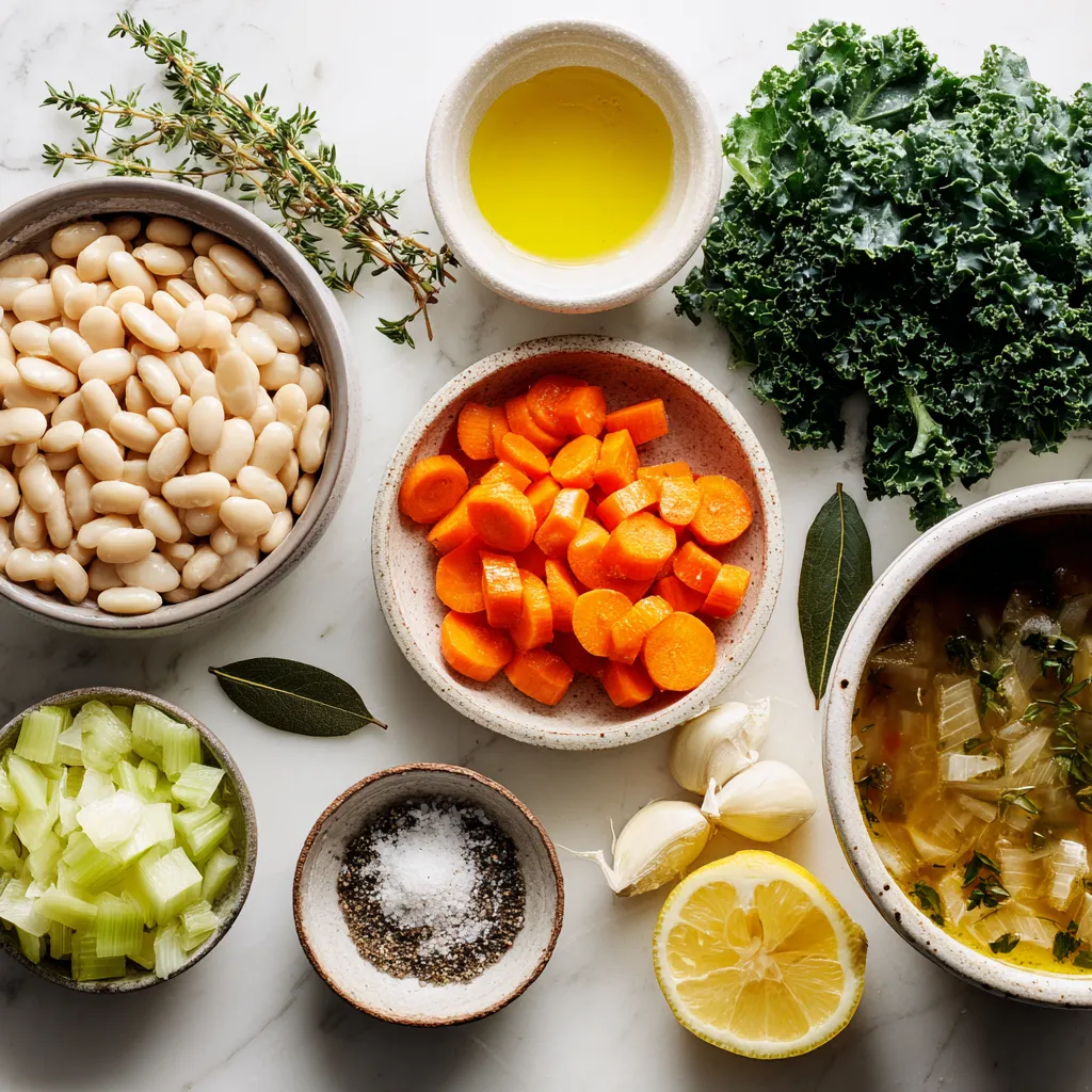 For a cozy bowl of white bean soup, gather these main ingredients:
